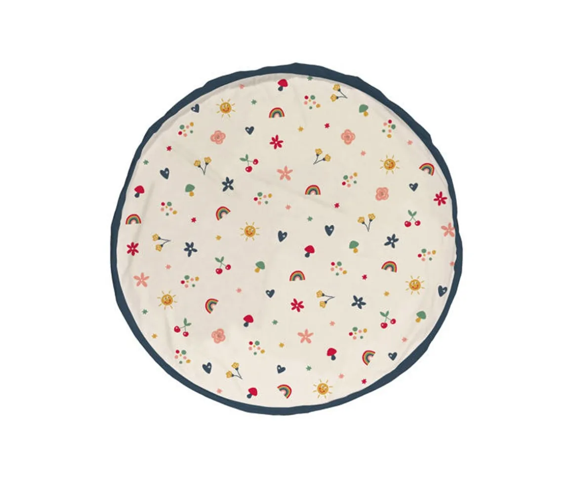 Este saco se desdobla y se convierte en una manta de juegos donde el niño puede jugar con todas sus juguetes, grandes y pequeños, y cuando llega la hora de acostarse, sólo hay que cerrarla y ya está todo recogido.
