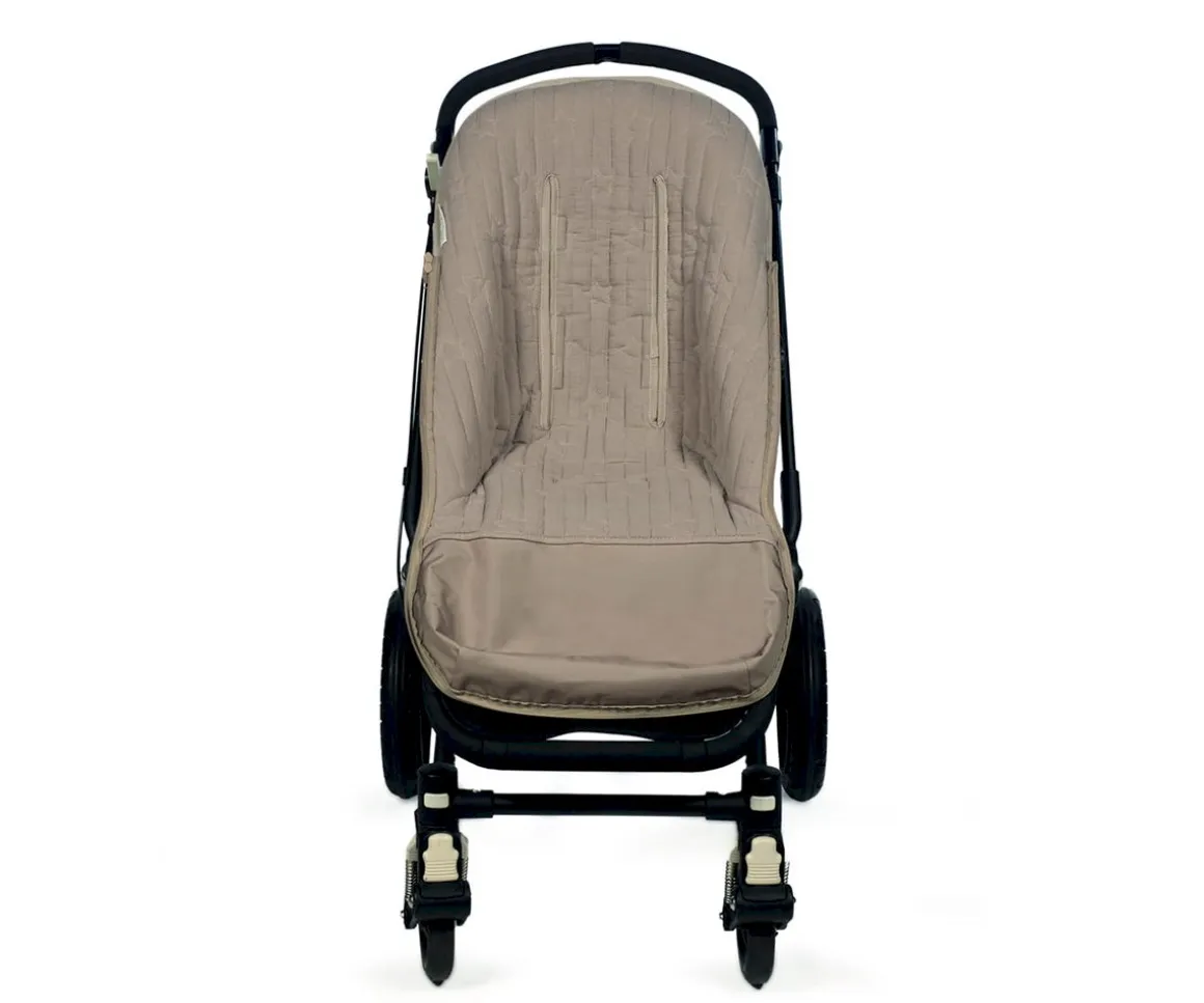 La funda saco para silla de paseo Caetana Sand de Walking Mum, está fabricada con tejido bordada de muselina 100% algodón que protege la base del cochecito y mantiene abrigado a tu bebé.