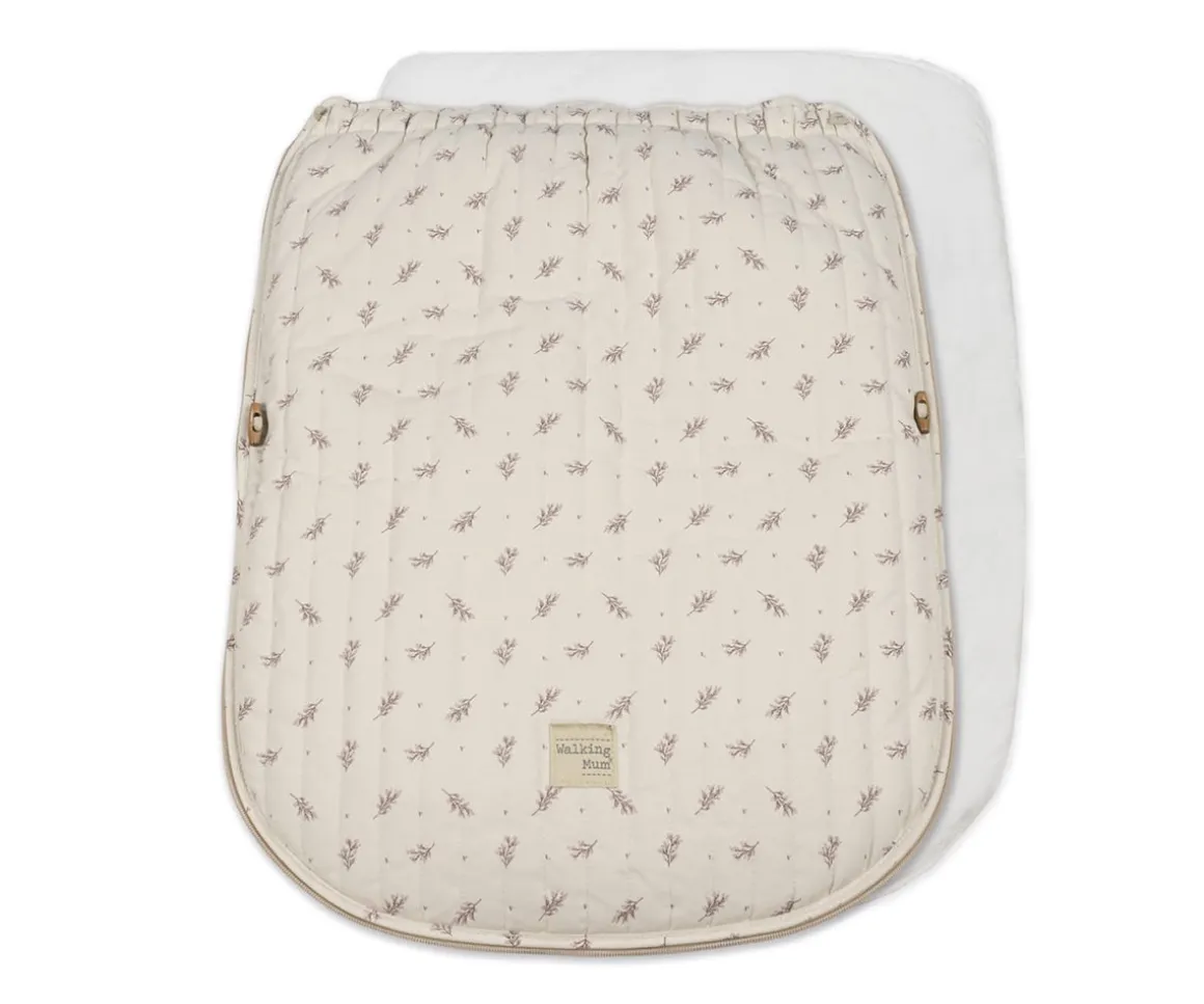 La funda saco para silla de paseo Mimosa Pink, fabricada con tejido 100% algodón, protege la base del cochecito y mantiene abrigado a tu bebé.