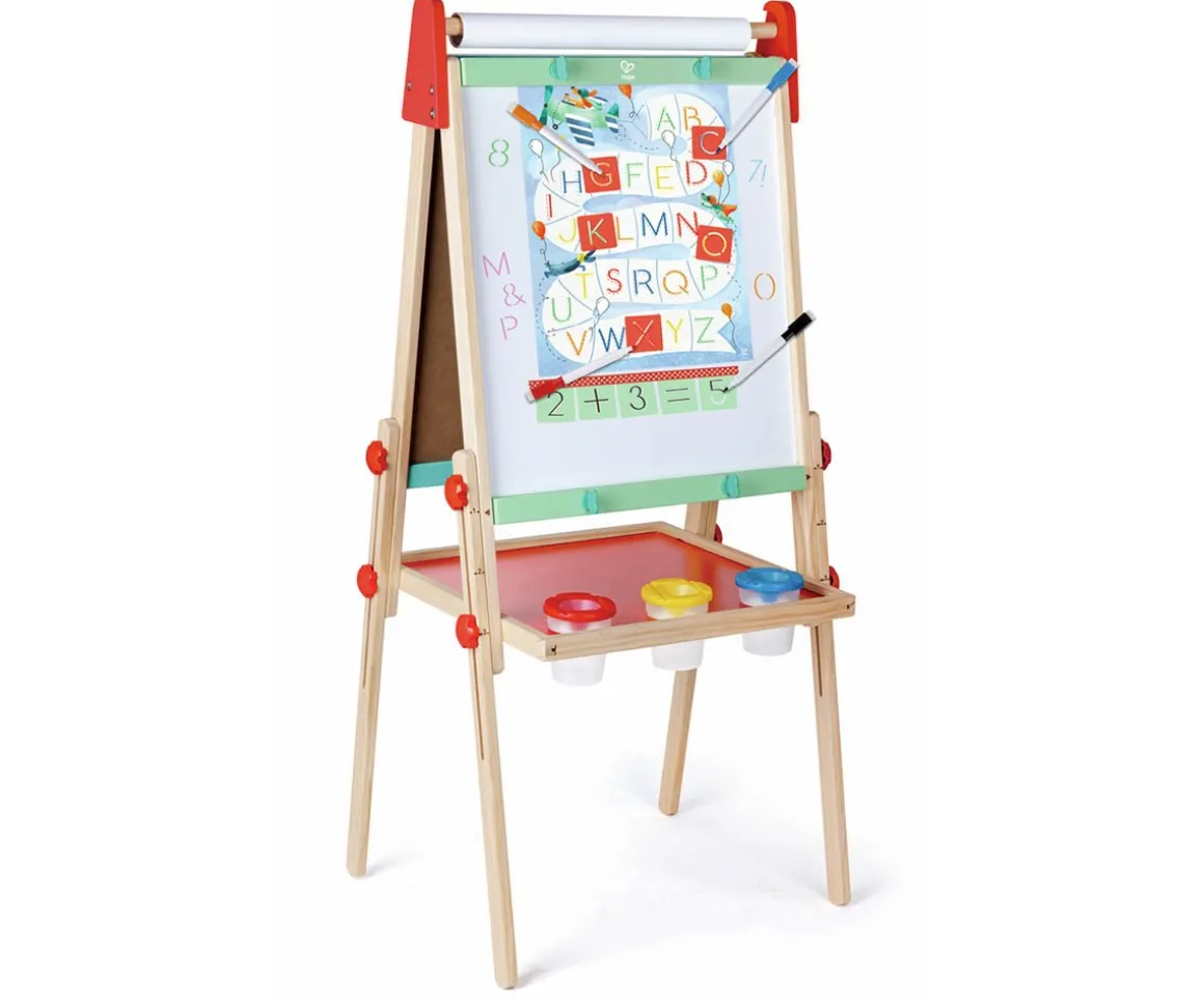 - Advertencia: Caballete Hape no incluído es un ejemplo visual de cómo poder darle uso a estas actividades
