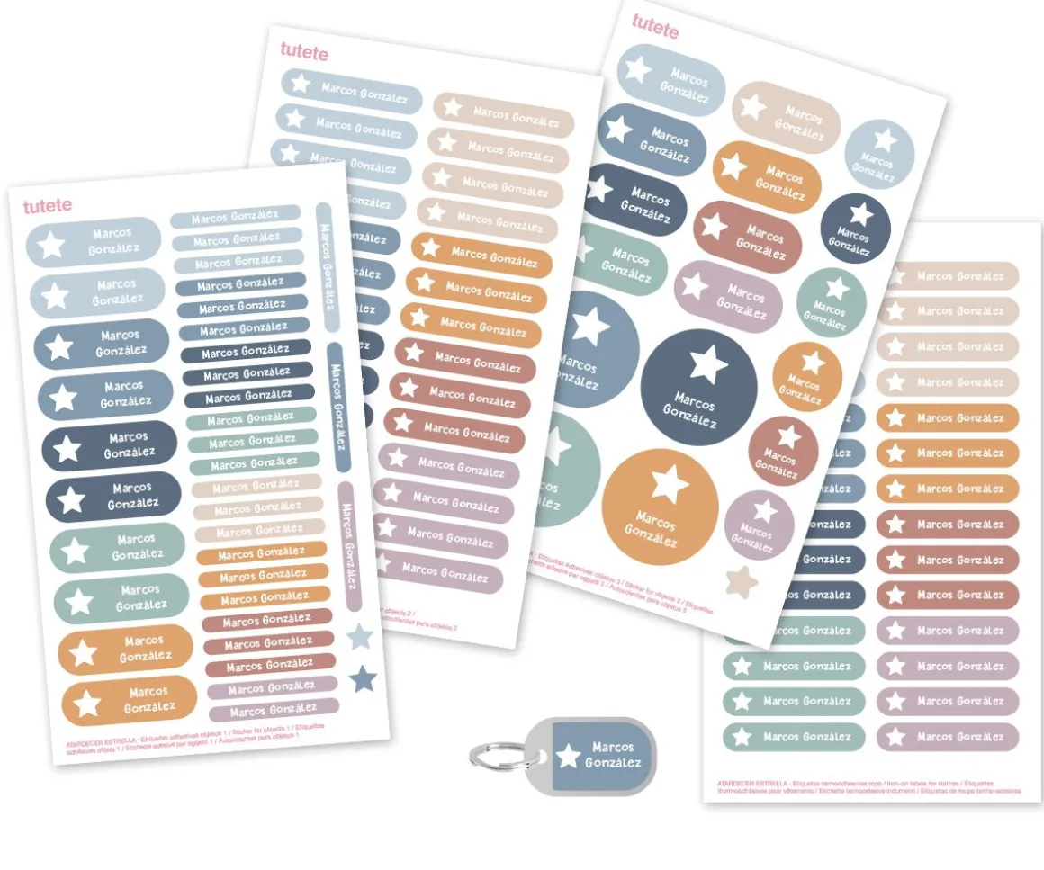 - El nombre que elijas irá impreso sobre una pegatina en el llavero y en todas las etiquetas del pack