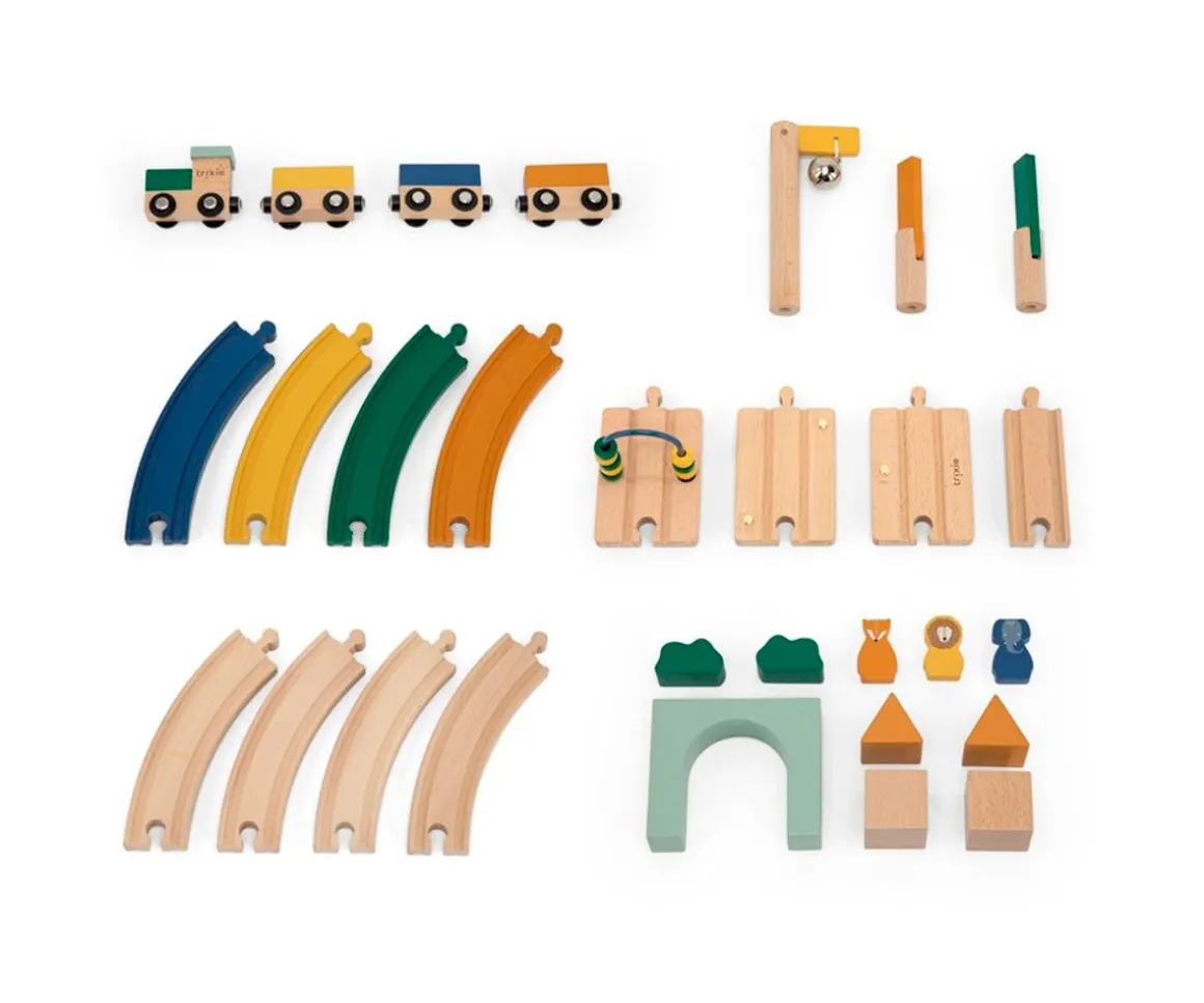 Construye el circuito, conecta los vagones entre sí, y haz que este precioso trenecito que transporta a los animalitos Trixie circule hasta su destino. Los peques lo pasarán en grande haciendo sonar la campanita de la estación.