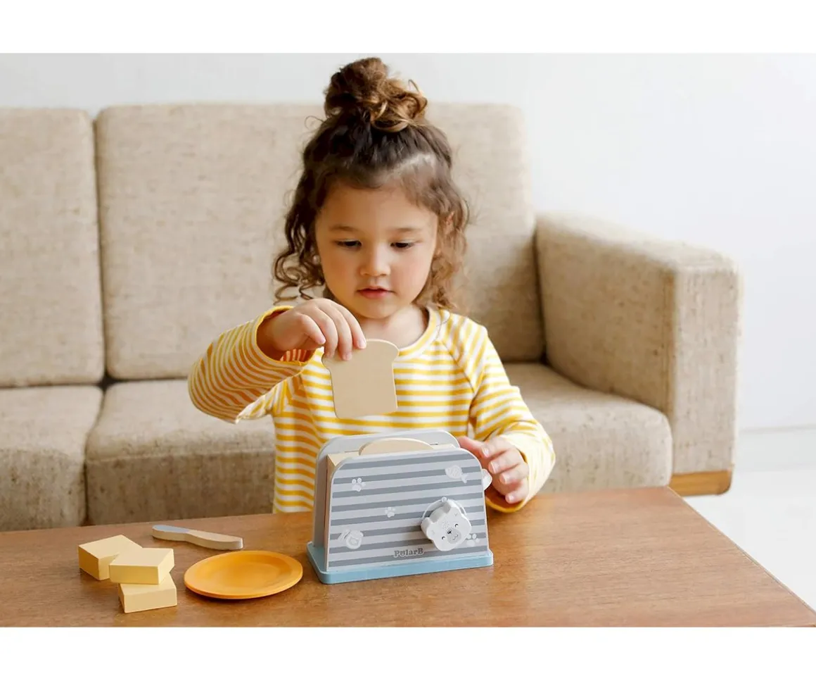 Divertida tostadora del osito polar de Polar B para hacer los desayunos de lo más divertidos. Al girar el osito sonará un clic y al bajar la palanca de la tostadora saltará el pan y ya estará listo para servir en el plato con su trocito de mantequilla.