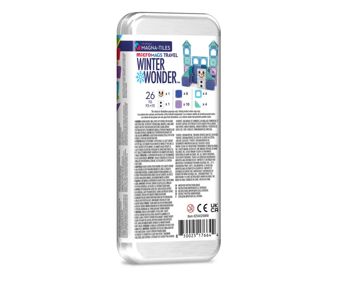 El set Winter Wonder Travel de Magna-Tiles® microMAGS es una edición limitada diseñada para acompañar a los más pequeños en sus aventuras, ¡donde sea que vayan! Con 26 piezas magnéticas en tonos invernales brillantes, este set compacto permite construir castillos helados, muñecos de nieve y escenas nevadas mientras se estimulan la creatividad y la motricidad fina.