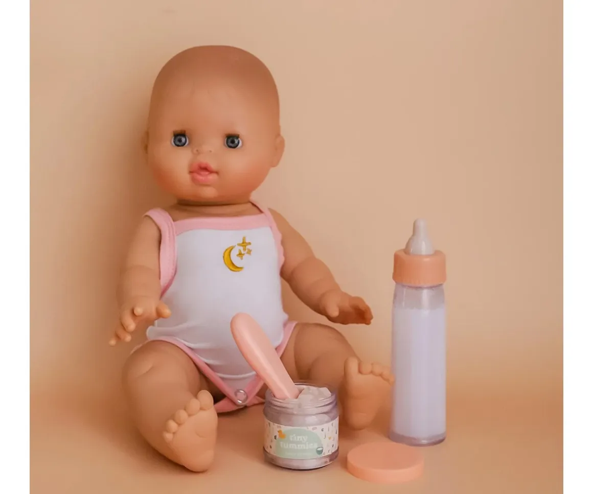 - Tarrito de comida para muñecas con diseño tipo puré de cereales