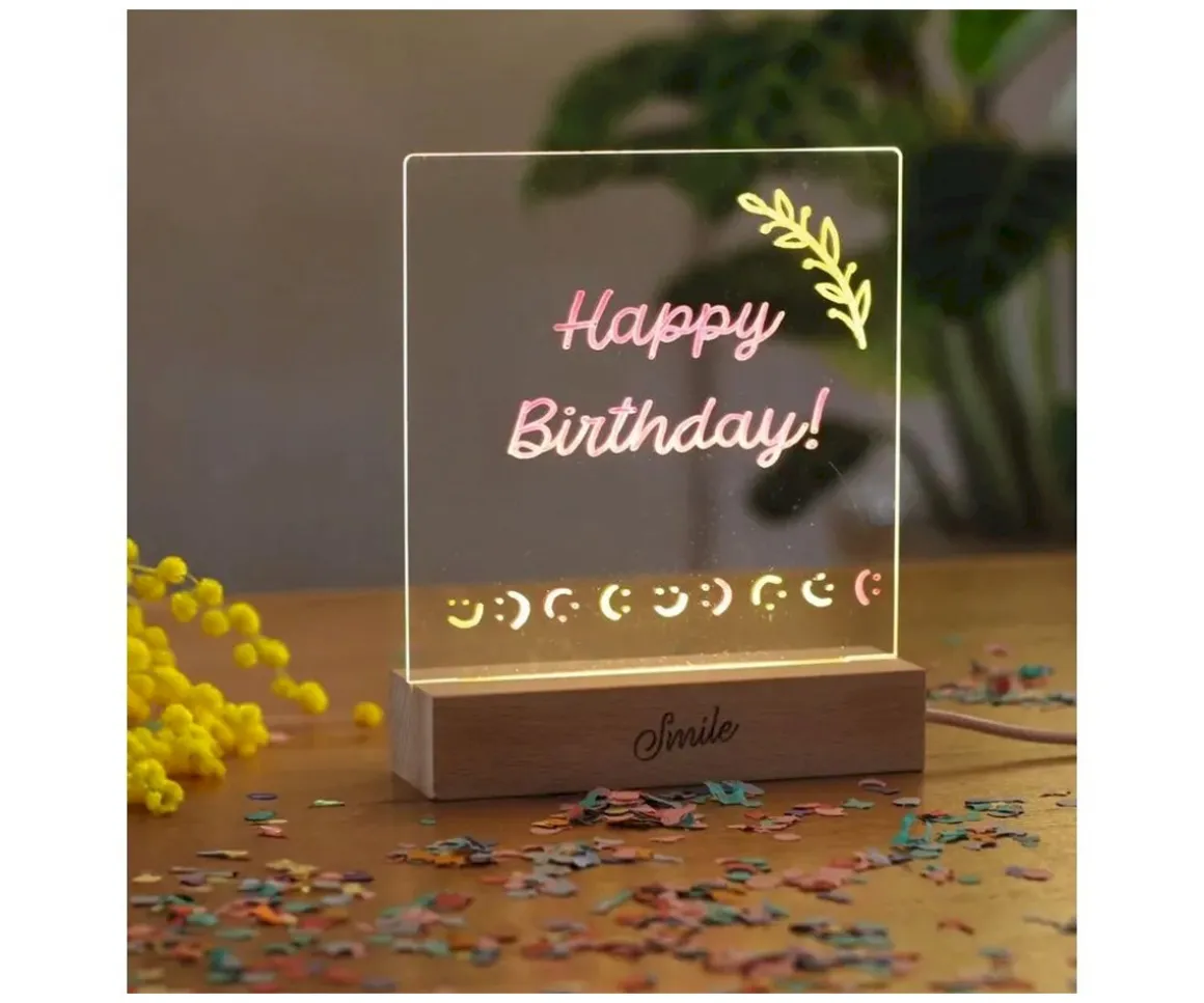 Hazlo de forma original escribiéndolo en este panel iluminado con luz LED y decóralo con los 3 marcadores que incluye. Los colores cobrarán vida cuando la luz esté encendida.