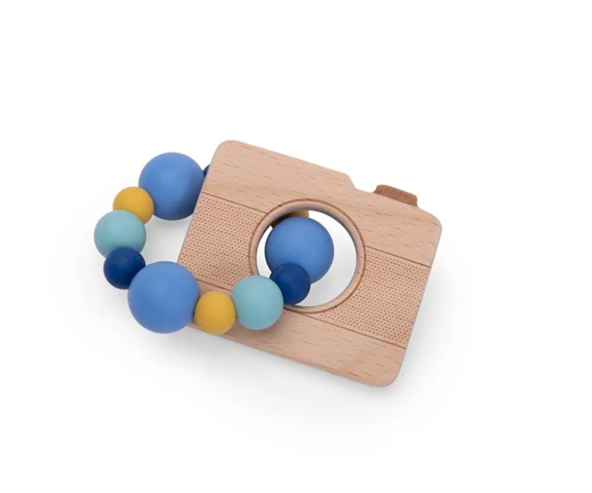 Bonito mordedor con forma de cámara de fotos que aliviará las encías de los más peques durante el proceso de dentición.