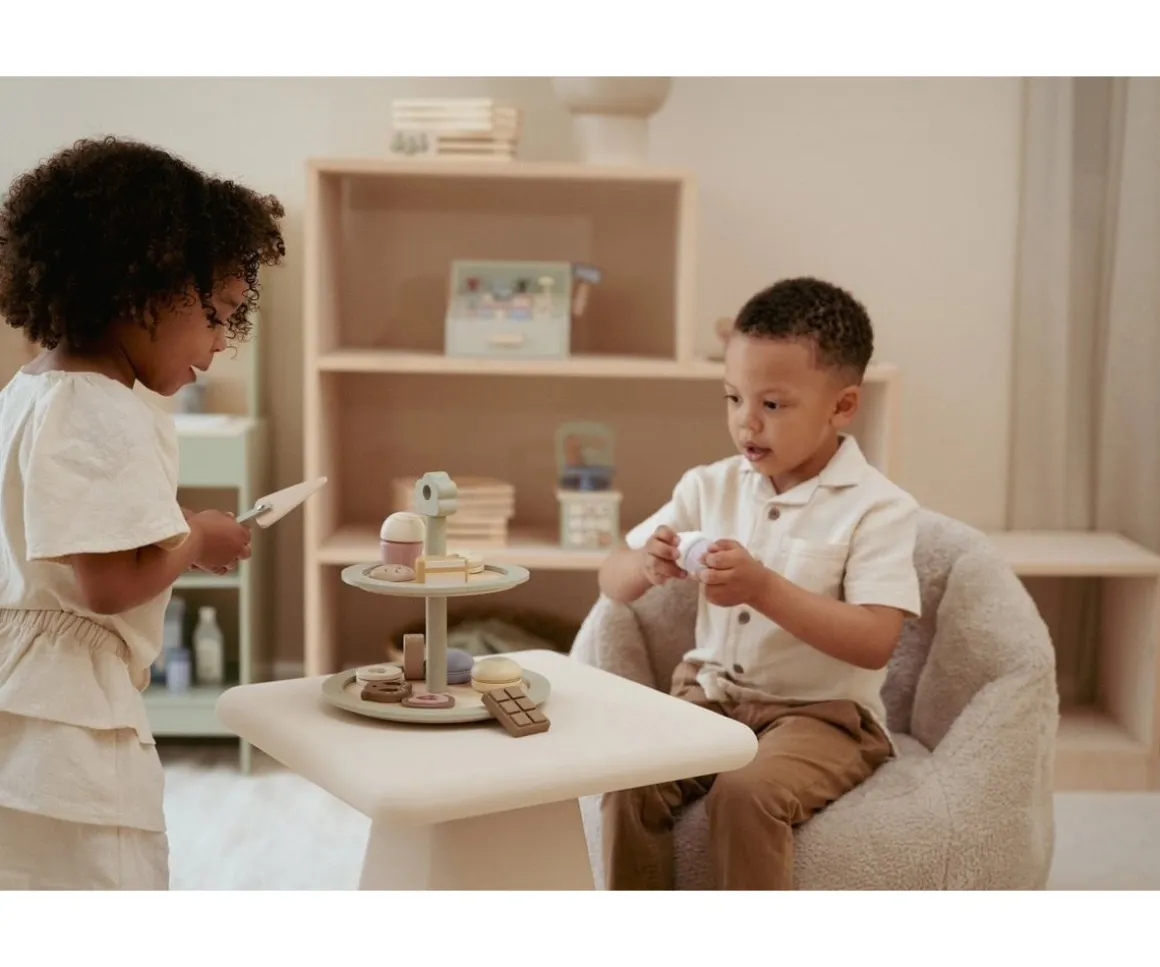 Con el encantador Soporte para Pasteles de madera FSC de Little Dutch, los peques pueden organizar su propia merienda o fiesta de té al más puro estilo tradicional. Este soporte de tres niveles incluye dulces de juguete irresistibles: muffins, galletas y macarons de colores listos para servir.