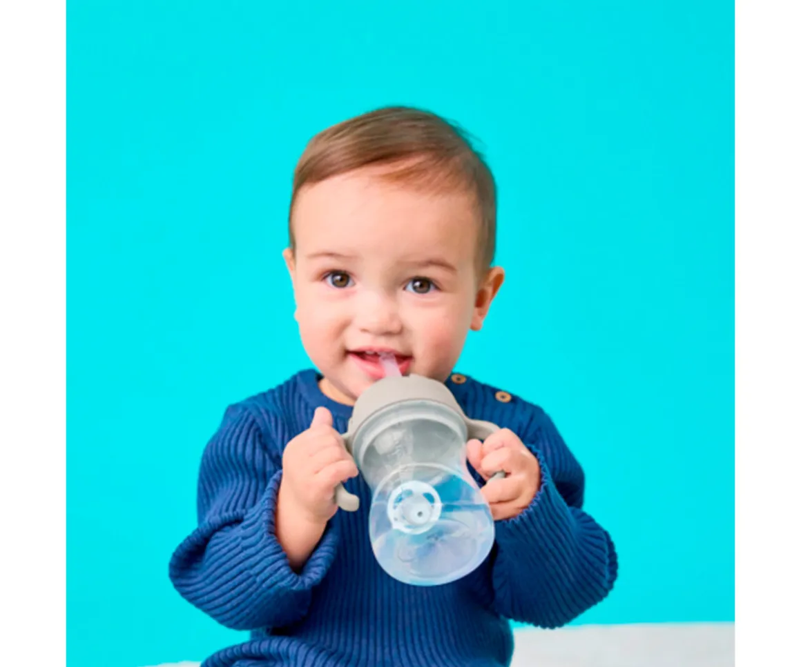 - Incluye: 1 taza + 3 tapas evolutivas (tapa con pajita lastrada para beber en cualquier ángulo, tapa abatible higiénica para mayor autonomía, tapa de flujo libre o controlado)