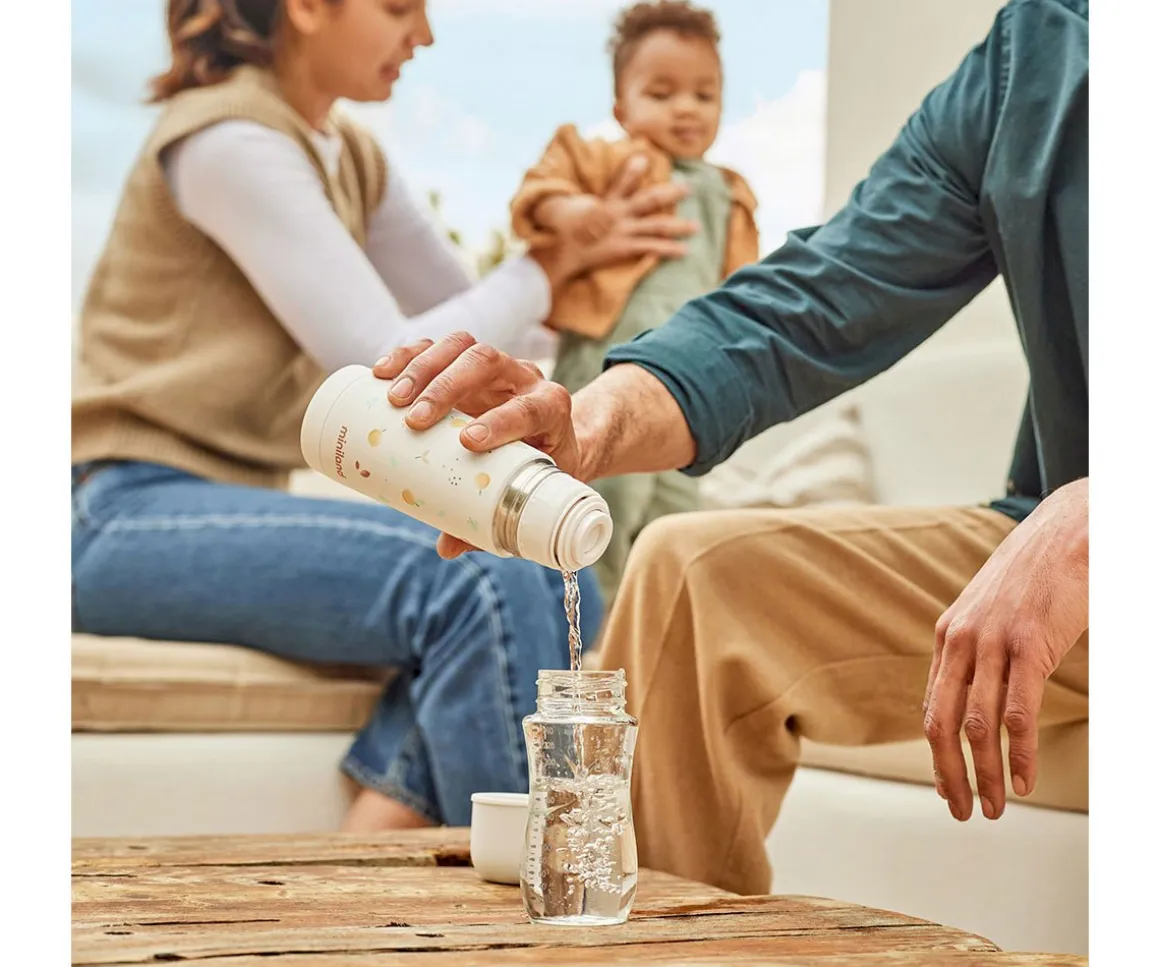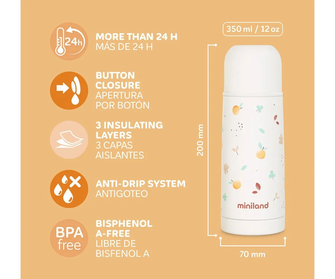 Este termo de acero inoxidable Thermy de la colección Valencia de Miniland,mantendrá los líquidos fríos o calientes durante mucho tiempo,gracias a su innovadora triple capa aislante, para que puedas preparar el biberón de tu peque en cualquier parte.