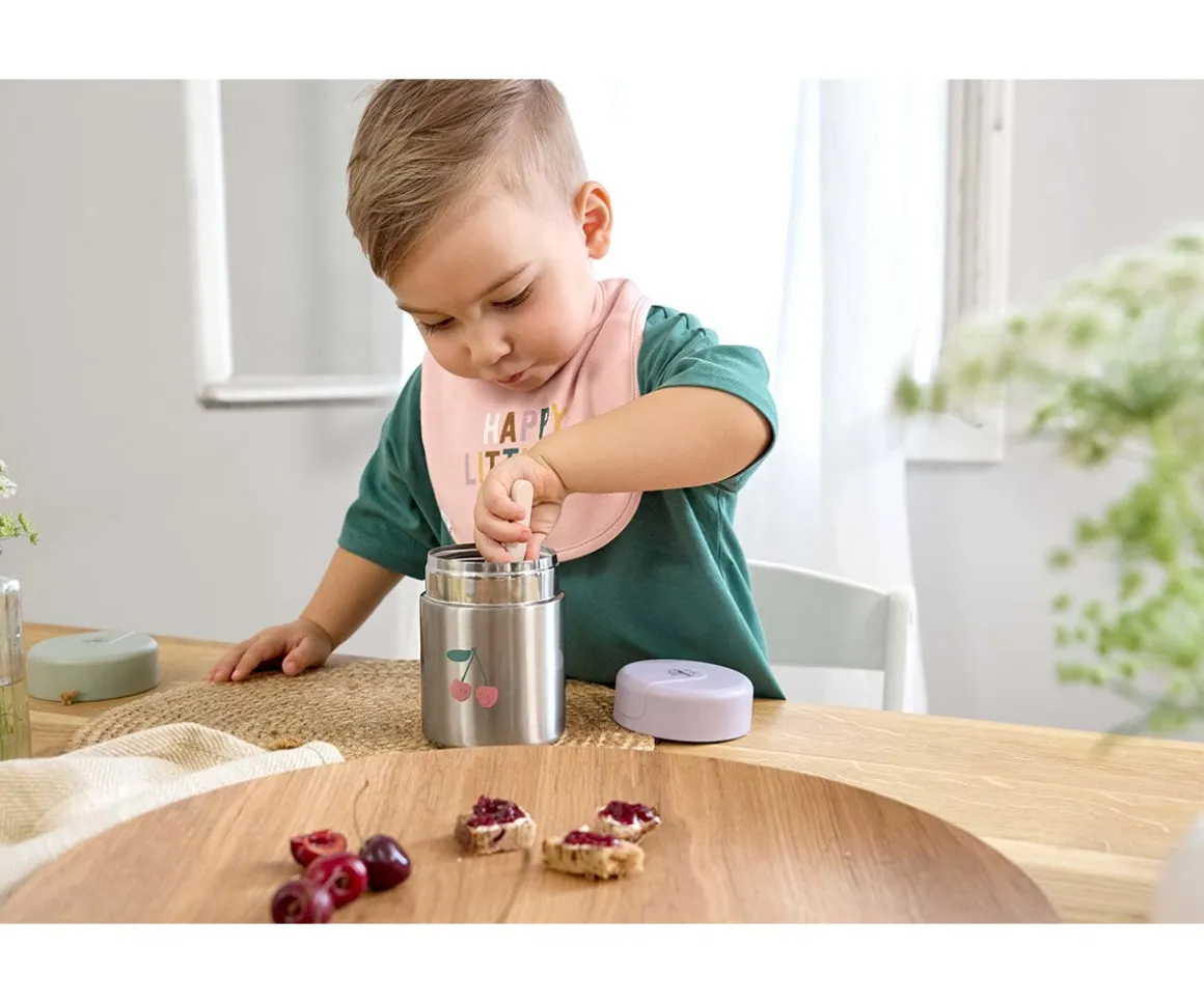 Termo para sólidos de doble pared de LÄSSIG, ideal para llevar la comida del bebé. Con una capacidad de 315 ml, mantiene los alimentos calientes o fríos y es a prueba de fugas.