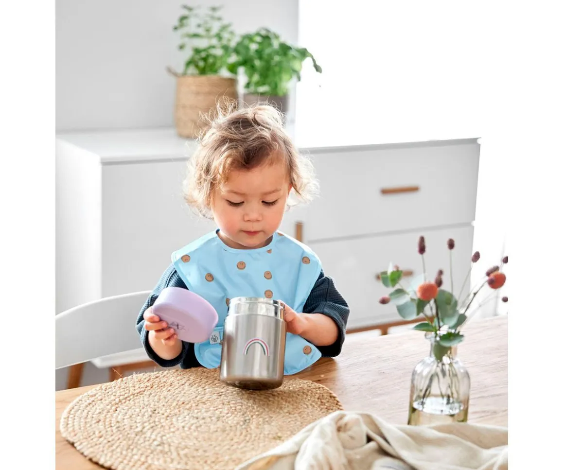 El recipiente termo de doble pared de LÄSSIG de la colección Happy Rascals, es perfecto para mantener la comida del bebé lista para comer cuando estás fuera de casa. Con una capacidad de 315 ml, este termo de acero inoxidable mantiene la comida caliente o fría y es a prueba de fugas.