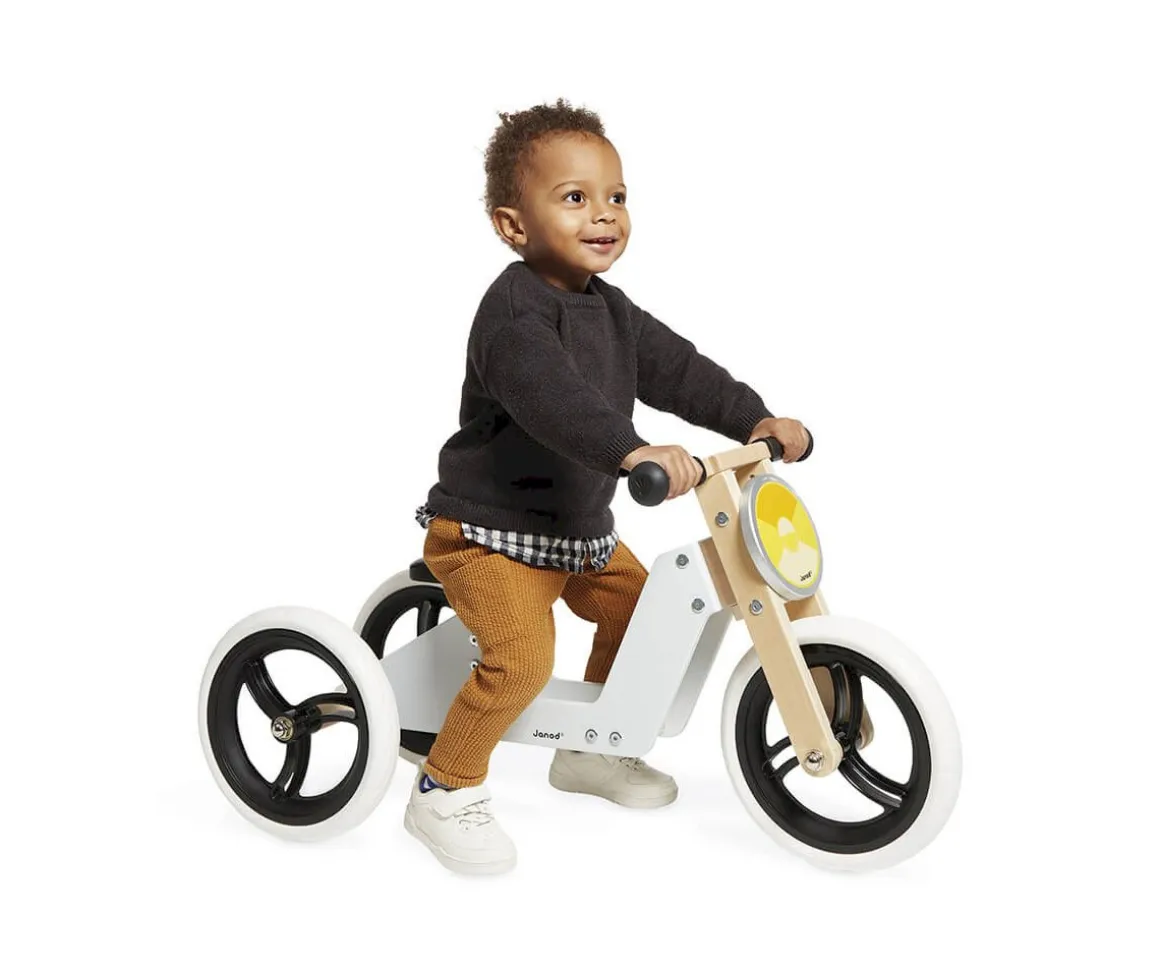 Los peques lo pasarán en grande a bordo de este bólido evolutivo. En posición de triciclo le ayudará a encontrar el equilibrio, trabajar su motricidad y seguir a los mayores en dos ruedas. Más adelante, podrá convertirse en una bici sin pedales cambiando las ruedas traseras por una sola rueda.
