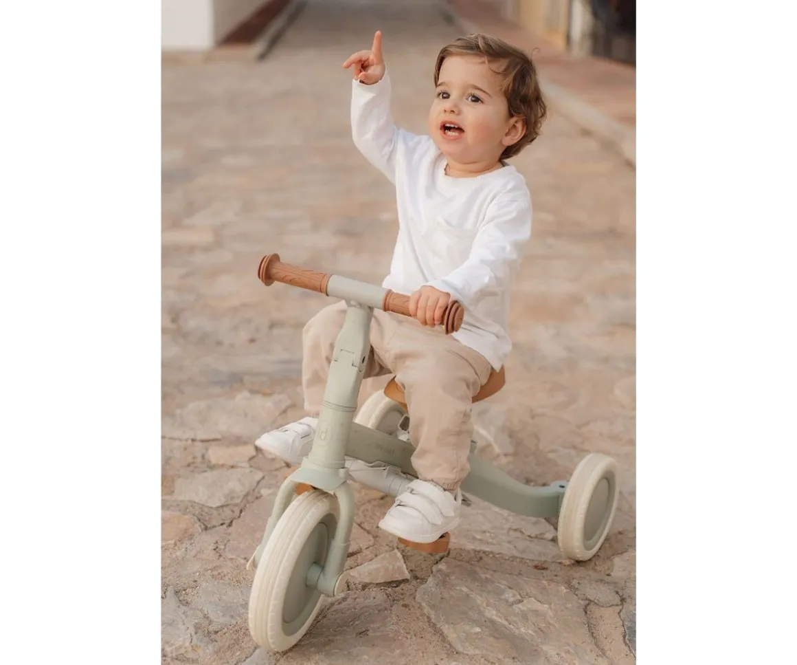 - Bicicleta de equilibrio: Plegando las dos ruedas traseras hacia dentro y los pedales se convertirá en una bicicleta de equilibrio para que tu peque comience ejercite la coordinación y confianza.