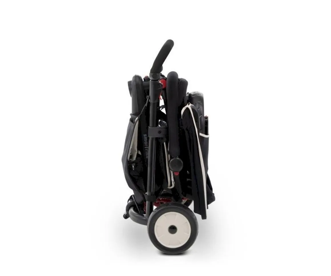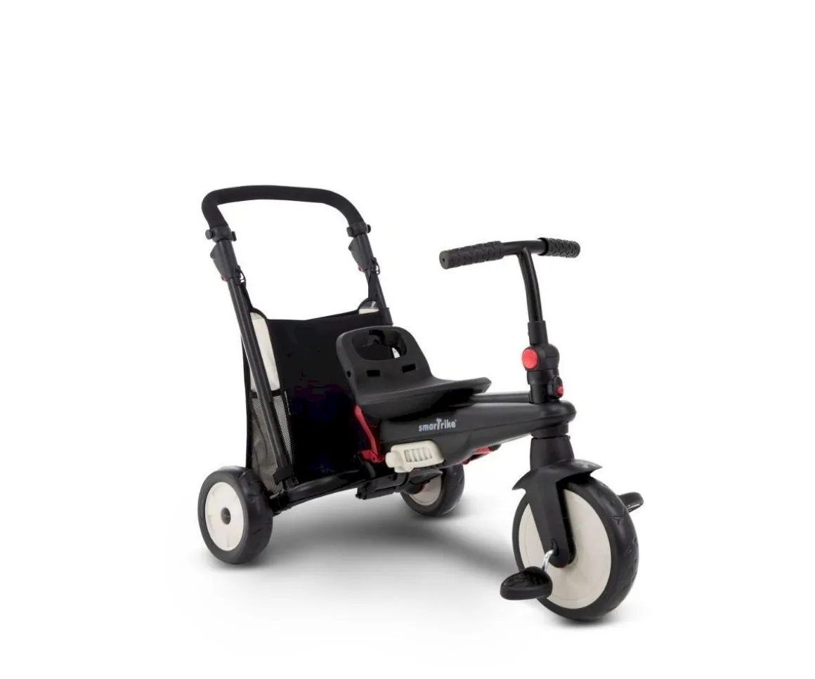 Cuando tu peque quiera un triciclo independiente quita el reposapiés y coloca los pedales y… ¡listo! Lo puedes cerrar con los pedales puestos o semicerrarlo y arrastrarlo con las ruedas traseras para cuando el peque se canse.