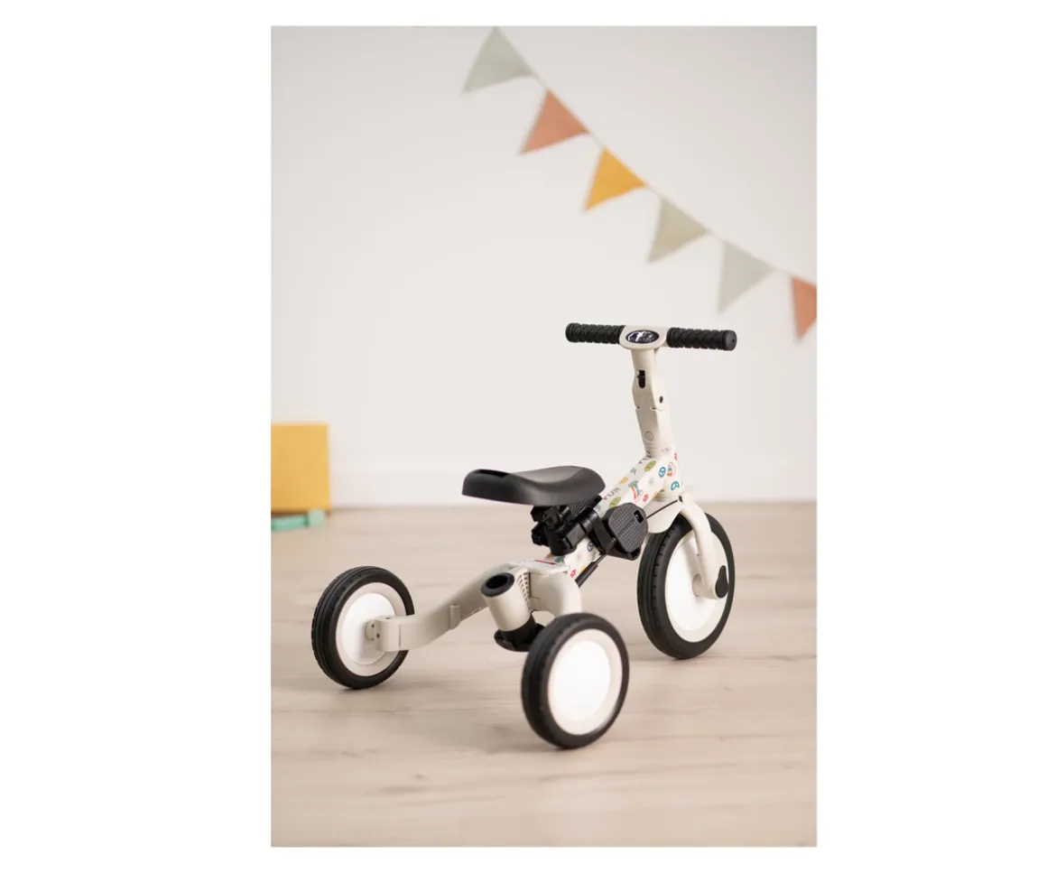 Al igual que su hermano mayor, el modelo Gyro, este triciclo evoluciona con el tiempo: puede usarse primero como triciclo guiado por los padres y, más adelante, transformarse fácilmente en un triciclo o bicicleta independiente, fomentando la autonomía y la confianza del niño.