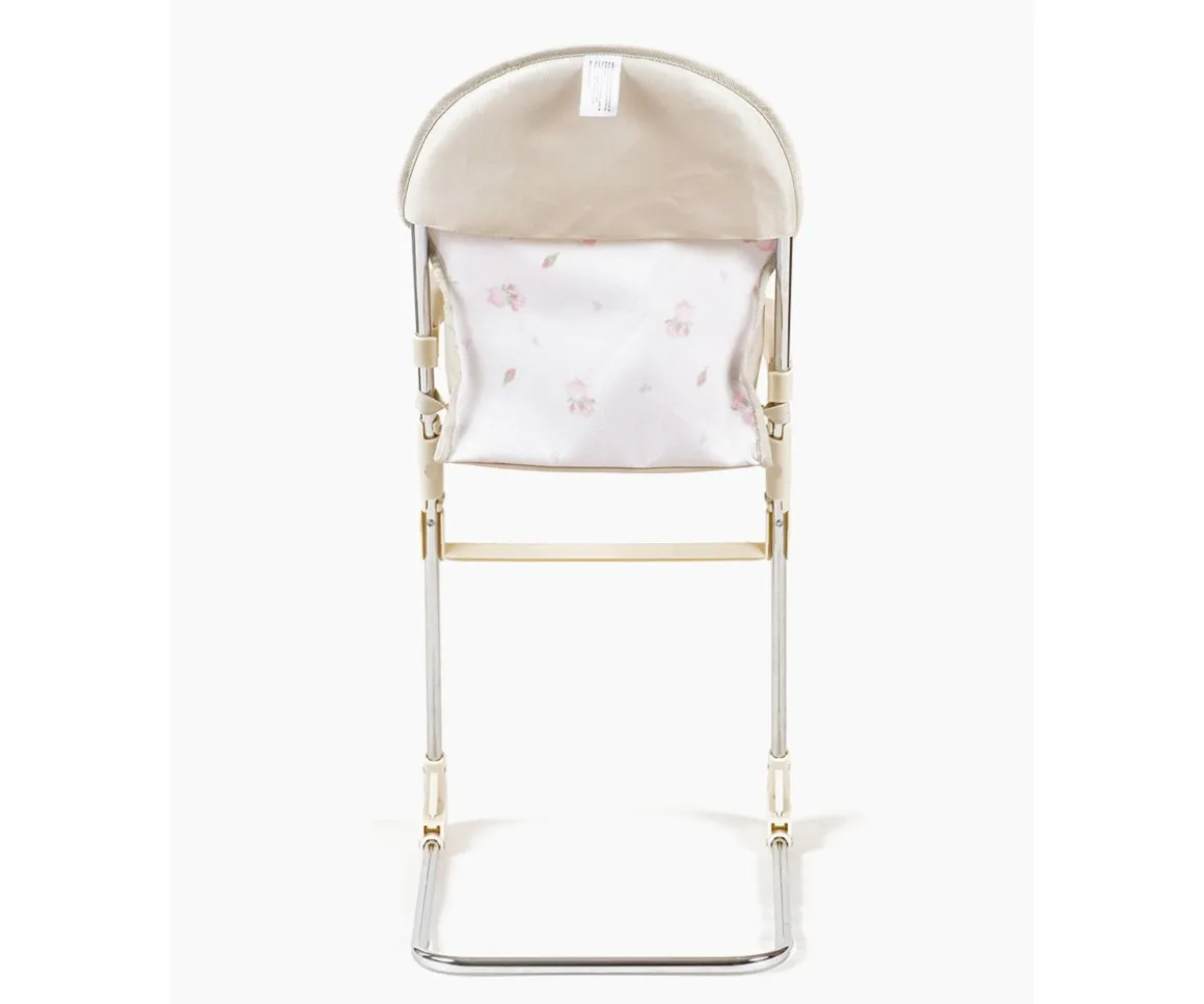 Es muy fácil de montar y desmontar para que puedas almacenarla cuando tu peque no la esté usando. Cuenta con un marco de cromo pulido y un asinto de tela acolchada para que tus muñecos estén muy cómodos en ella.
