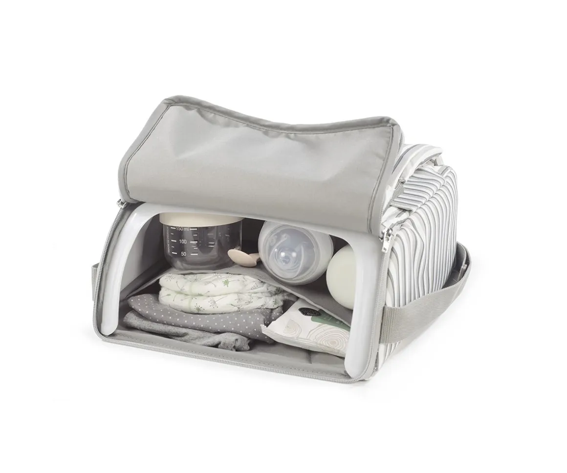 Trona portátil de la colección Botton Raya de Walking Mum con función 2 en 1: asiento elevador y bolsa de almacenaje con asa para colgar del hombro.