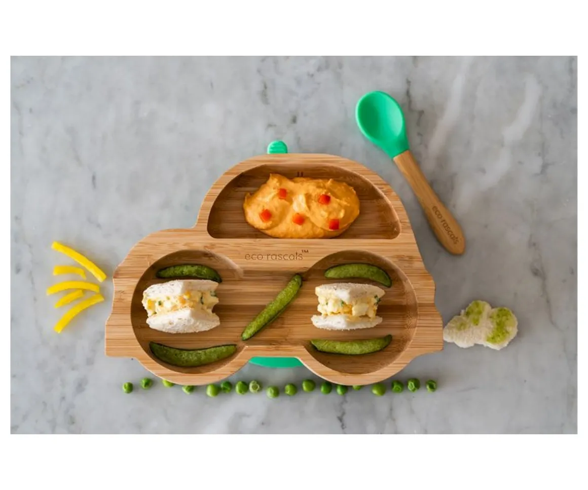 - Plato bambú coche verde con ventosa