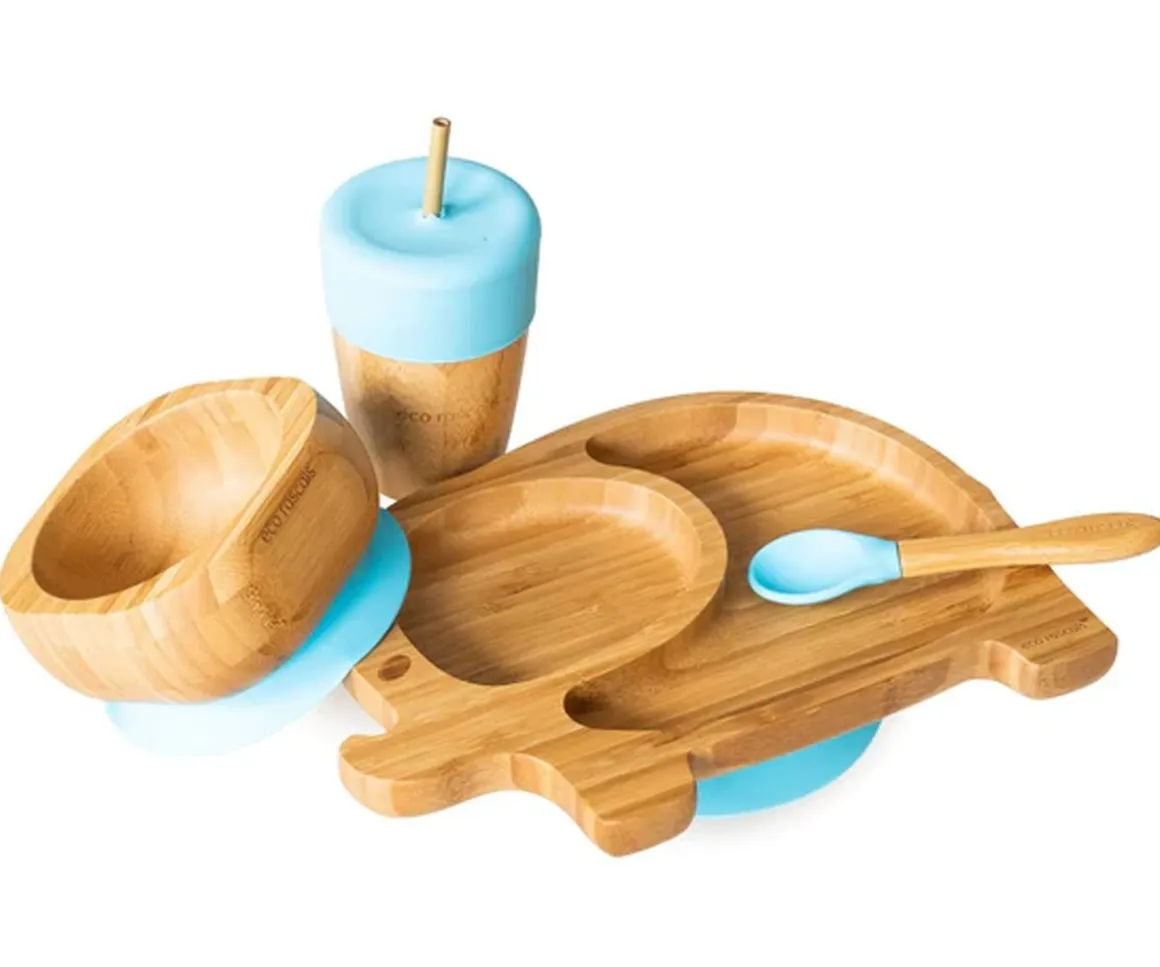 El set incluye un plato, un bol, una cuchara y un vaso con tapa de silicona y dos pajitas. Un regalo ideal para cualquier peque
