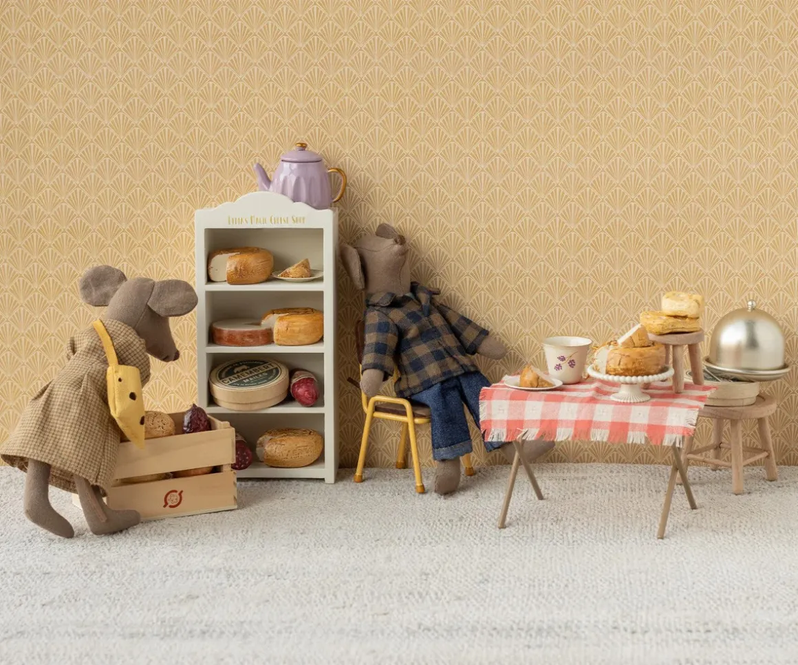 Un conjunto muy original con el que vestir a tu ratón mamá de Maileg. Está formado por un vestido vaquero, una cinta para el pelo y un pequeño bolso a juego.