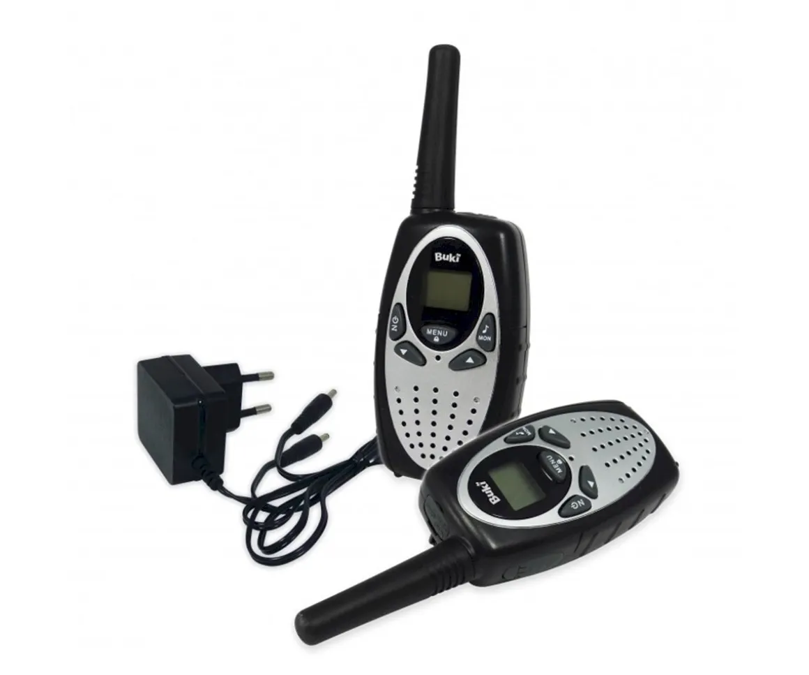 - Incluye: 2 walkie talkies, 1 conector de alimentación, adaptador de red, 2 baterías de litio, 1 manual de instrucciones ilustrado